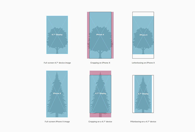 在設(shè)計背景圖像時要記住,iPhone X的縱橫比也不同于4.7“顯示”。為iPhone 816:9的縱橫比創(chuàng)建的背景圖形需要調(diào)整以滿足iPhone X的技術(shù)要求。為了避免負面的結(jié)果,最好是構(gòu)圖使關(guān)鍵的視覺信息保持可見,而不考慮顯示的長寬比。