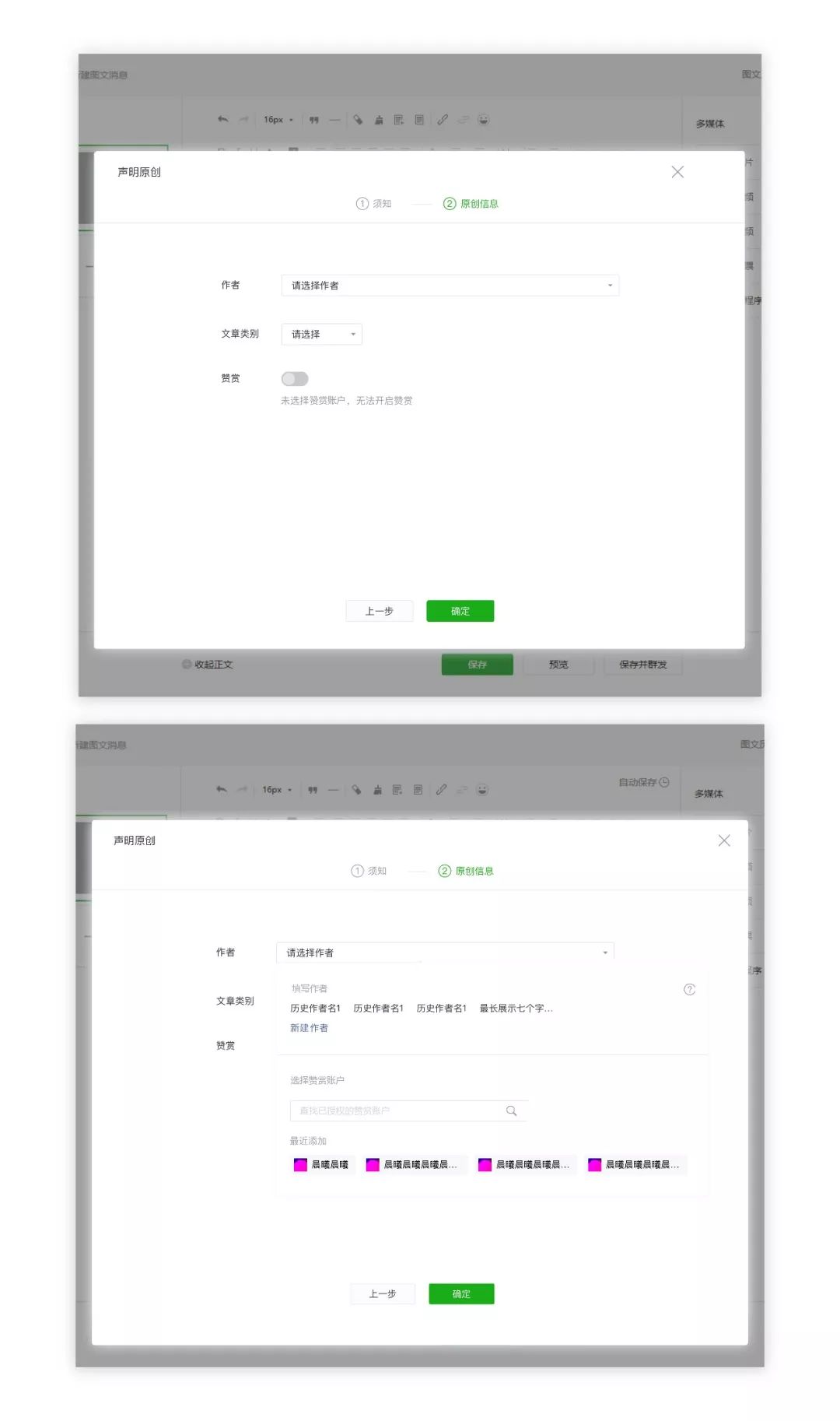 5. 訂閱號助手App編輯文章時(shí)是否能選擇贊賞賬戶?